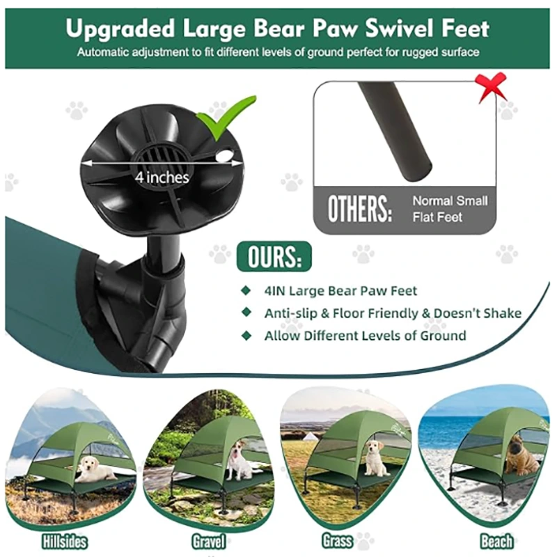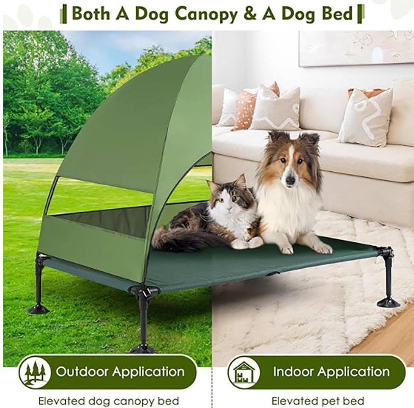 מיטת כלב חתול עם חופה, מיטת כלבים מוגבהת משודרגת עם חופה, מיטת כלבים חיצונית ניידת מוגבהת עם רגליים יציבות נגד החלקה, מיטת חיות מחמד בגוון רחב יותר, מיטות כלבים מוגבהות לכלבים גדולים קמפינג, שימוש בפנים ובחוץ.