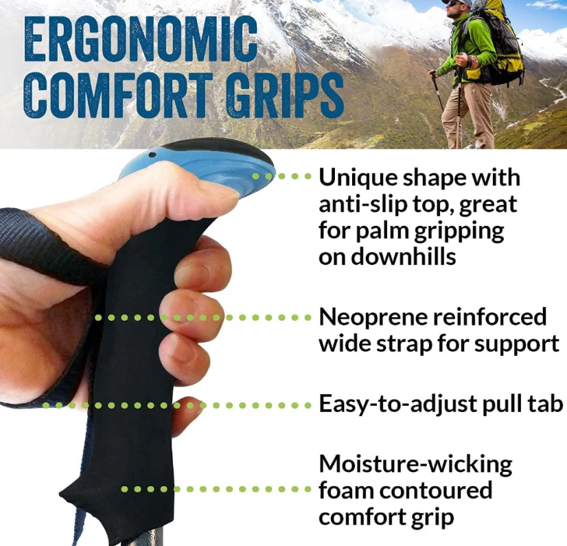 ידית כפולה מוטת טרקים מתקפלת, אוויר של עמודי טיול / הליכה / טרקים מתקפלים מתכווננים המתכווננים המתמוטטים ל -13.5 אינץ 'בלבד ומשקלים פחות מ -11 גרם כל אחד. המתנה המושלמת לחובב הנסיעות. בחר את הקטבים שמתאימים לגובה שלך ולבחירת האחיזות שלך.