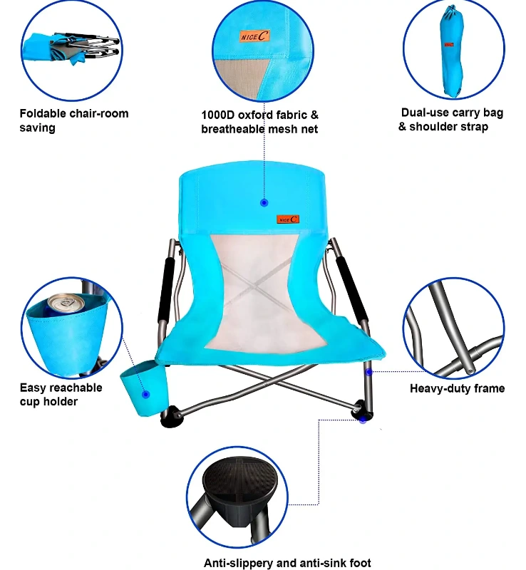 ערכת חוף מתקפלת, כסאות חוף נמוכים למבוגרים המתקפלים כיסא חול נייד עם מחזיק כוס ושקית נשיאה. Zhejiang Jiayu Outdoor Products Co., Ltd., בד רשת נשימה וקירור המאפשר לזרום אוויר בזמן שאתה יושב. יש כריות זרוע בזרועות המתכת כך שתוכלו לנוח את זרועותיך בנוחות.