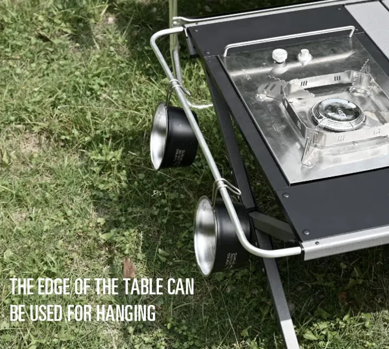 טבלת IGT מתקפלת רב -תפקודית קלה, בהתאם לצרכים שלך. מושלם לקמפינג, מנגלים, בישול בחוץ ועוד. ניתן להשתמש בצד השולחן לתלות כלים וכלים