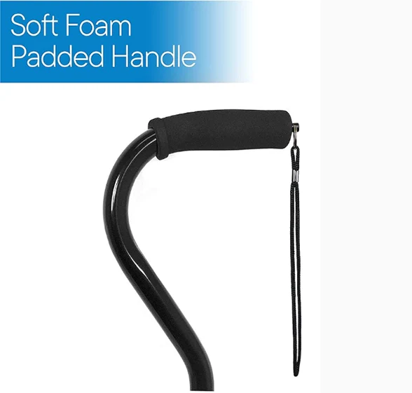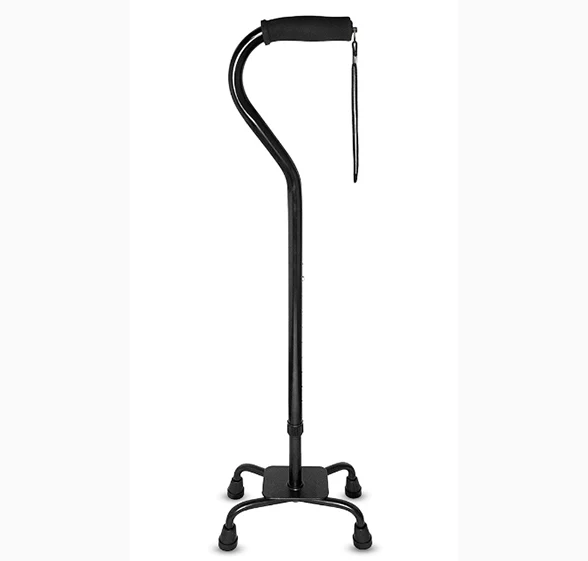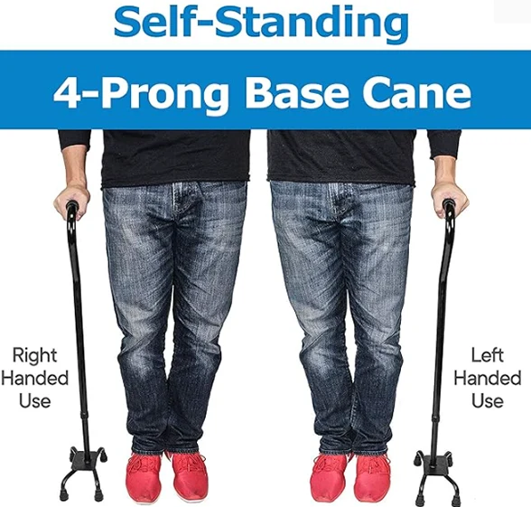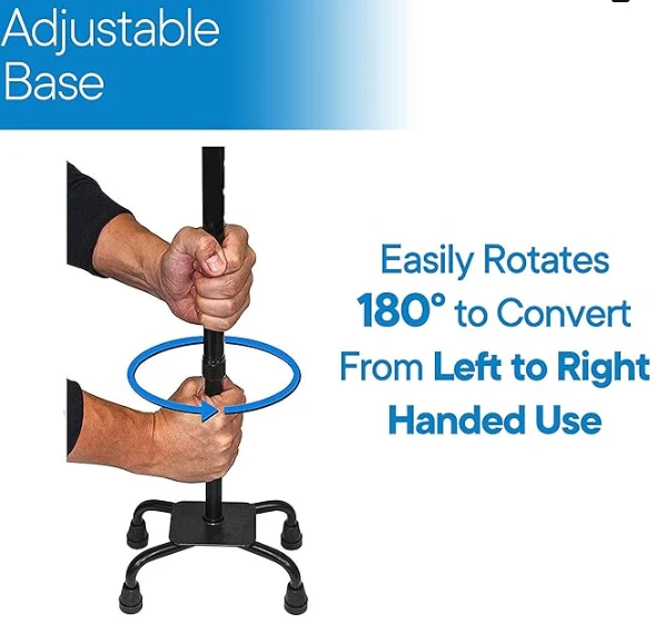 קנה רפואי של זקן, כל שחרור מכוסה בקצה קנה גומי נגד החלקה ליציבות ובטיחות נוספת. בסיס הרביעי הופך אותו למקל עצמאי שמבטל את הנפילה או הנשירה על הרצפה. מושלם לאחר הניתוח כשאתה לא יכול להתכופף או להגיע.