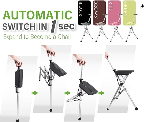 גברים זקנים Alpenstock טרקים קנה, מנוחה ומקל טיולים לתמיכה. העיצוב הזה, שממיר מייד מקל טיולים לכיסא עם הצמד, מציע מנוחה לרגליים וברכיים עייפות בהתראה של רגע.