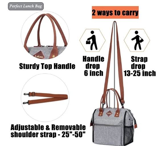 תיק ארוחת צהריים גדול כולל תא ראשי (10.5 "x6" x12 "), כיס רוכסן קדמי גדול (8" x7 "x1.5"), כיס אחורי (9.5 "x6.5") ו -2 כיסי רשת צדדית. ידיות עליונות ועיצוב רצועת כתפיים מתכווננת ונשלפת (25 "-50") לעיבוד קל.