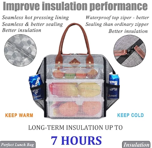 תיק קירור של נייר אלומיניום חיצוני. בידוד לטווח הארוך - בגלל הרירית המבודדת ורוכסן אטום למים, קופסת ארוחת הצהריים המבודדת הזו יש איטום נהדר והיא מרופדת. הזמן של שמירה על אוכל ומשקאות קר/חם במשך 7 שעות ז'ג'יאנג ג'יאו מוצרים חיצוניים ושות 'בע"מ. בין אם בעבודה, לנסוע או ליהנות מהחוץ, המוצרים שלנו נועדו לשפר את חווית האוכל שלך, ולהפוך כל ארוחה לשמחה.