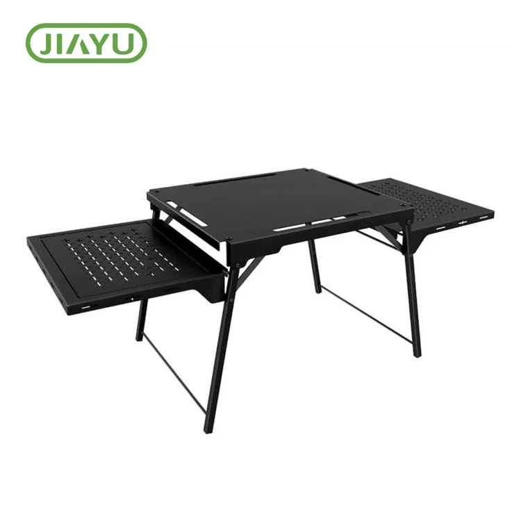 שולחן קמפינג קמפינג אלומיניום-ברזל מתקפל נייד. קל מאוד לניקוי ואל תכלול בקלות. ניתן להסיר את השמן והשומן המצורף לראש השולחן. כדי למנוע רטיבות פריטים, תא האחסון מעוצב בסגנון רשת.
