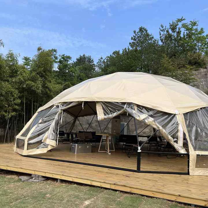 אוהל מחנה בסיס גיאודזי טקטי אטום לרוח. בין אם אתם מתכננים טיול קמפינג, מארחים התכנסות בחצר האחורית או פונים אל החוף ליום כיף, זו יכולה להיות בחירה אידיאלית למשפחות המחפשות נוחות ונוחות .. zhejiang Jiayu Products Co., Co., בע"מ, היא מספקת נוף ללא הפרעה של 360 מעלות על הסביבה שמסביב, מה שהופך את חווית החוץ שלך למהנה ונוחה יותר.