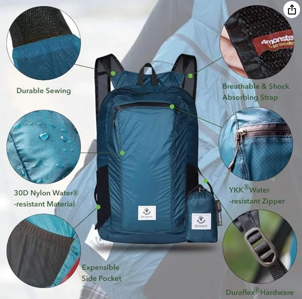 תרמיל טיולים קל משקל קל משקל, תרמיל מתקפל מספק מספיק מקום לנסיעות חיצוניות, קמפינג, טיולים רגליים, טיולי יום וקניות. מגיע עם כיס רוכסן ראשי, כיס רוכסן קדמי ושני כיסים בצד רשת. Zhejiang Jiayu Outdoor Products Co., בע"מ. אנו רוצים לוודא שיש לך חוויה מדהימה איתנו. 30 יום ללא החזרות טרחה / חילופי חינם, אחריות של 12 חודשים.